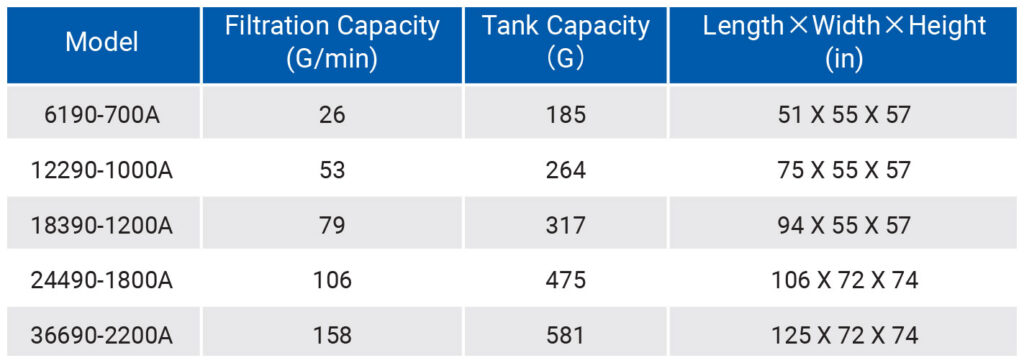 Os sistemas de filtragem TRANSOR podem ser usados com todas as marcas de retíficas de ferramentas. Os pacotes padrão de Sistemas Centralizados de Filtragem, incluindo modelos de um-para-um até um-para-nove, atendem às necessidades de diferentes clientes em filtragem de precisão.